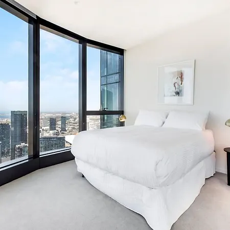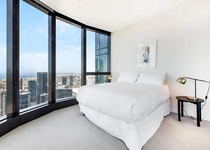 Das 2-Zimmer-Apartment 'Sky-High 65' Southbank Comfort With Sweeping Views Melbourne City mit Blick auf die Stadt liegt in etwa 15 Gehminuten Entfernung von der NGV in Melbourne City.